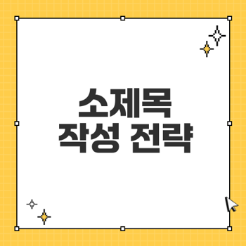 효과적인 소제목 작성을 위해 몇 가지 전략을 활용할 수 있습니다. 다음과 같은 사항을 고려해 보세요:
